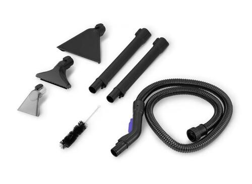 Моющий пылесос для ковров и мягкой мебели КТ-5246 поможет очистить обивку дивана, кресел, сидений в машине и другой мягкой мебели, а также ковры и ковровые покрытия. Пылесос подает чистую воду на поверхность, а затем всасывает воду с загрязнениями. В резервуар для чистой воды 2,9 литра можно добавлять только воду. В резервуаре для грязной воды 1,5 литра предусмотрен поплавок, который позволит следить за уровнем воды. В комплекте есть 3 насадки: Насадка с ворсовой щеткой хорошо подходит для очистки въевшихся загрязнений, а малая насадка для очистки труднодоступных мест. Напольная посадка облегчит очистку ковров и ковровых покрытий. В комплект, помимо различных насадок, входят также удлинительные трубки, шланг, рукоятка и другое. На устройстве предусмотрена панель управления. Она проста в понимании, с помощью нее вы можете включать и выключать устройство, менять уровень мощности. Между кнопками располагаются индикаторы мощности. Моющий пылесос предназначен только для влажной уборки и не подходит для того, чтобы пропылесосить диван или ковер. Чистить моющий пылесос очень легко, так как все насадки, резервуары и фильтры без затруднений снимаются и промываются проточной водой.