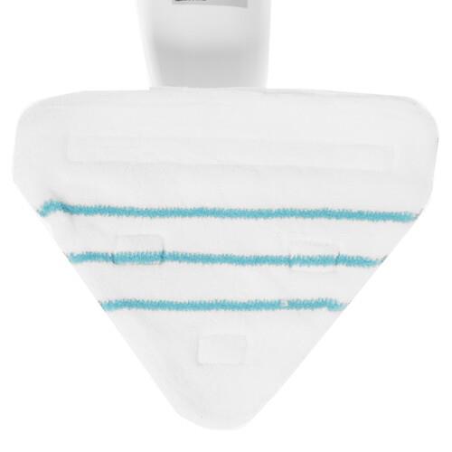 Пароочиститель Kitfort КТ-1056 способен устранять загрязнения и дезинфицировать обрабатываемые поверхности благодаря воздействию горячего пара. Прибор выполнен в виде швабры и оснащен 2 сменными мягкими тряпками для деликатной обработки гладких напольных покрытий. Они фиксируются на насадке при помощи липучек. Для чистки ковровых изделий предусмотрена специальная рамка.