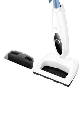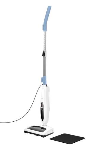Паровая швабра с электровеником КТ-3912 – универсальное устройство, которое совмещает себе функции паровой швабры и электровеника. Прибор поможет быстро избавиться от мусора и пыли, а также очистить и продезинфицировать напольные покрытия паром. Напольная щетка по краям оснащена липучками для закрепления тряпки для пола. Вы можете использовать тряпку из комплекта или любую другую подходящую ткань, которая сможет зацепиться за липучки. Рамка для ковра облегчает скольжение щетки для пола по ковру. Паровая швабра обладает большим углом наклона, который поможет легко убрать пространство под мебелью. Напольная щетка закреплена на специальном шарнире с наклоном в двух плоскостях, что делает швабру очень маневренной и облегчает уборку. Устройство оснащено съемным резервуаром для воды емкостью 350 мл, что позволяет производить непрерывную уборку до 18 минут. Кнопка «Подача пара» включает и выключает подачу пара. После нажатия на данную кнопку световой индикатор будет мигать, начнется нагрев бойлера. Кнопка «Турбощетка» на напольной щетке включает и выключает вращение турбощетки. Устройство оборудовано туробщеткой и пылесборником, благодаря которым оно может использоваться в качестве электровеника и собирать сухой мусор. Электровеник подметает пол турбощеткой, которая смахивает мусор в пылесборник. емкость пылесборника составляет 200 мл. Для проведения уборки достаточно включить турбощетку и перемещать напольную щетку по поверхности, как при мытье пола. Собранный мусор можно быстро вытряхнуть из съемного пылесборника. Коврик предусмотрен для защиты напольного покрытия. На него можно установить устройство в положение вертикальной парковки во время нагрева устройства и перерывов в уборке. Телескопическая удлинительная трубка позволяет регулировать ее длину так, как вам удобно. В устройстве предусмотрены держатели для шнура. Удлинительную трубку можно снять для компактного хранения. Паровая швабра с электровеником КТ-3912 станет вашим главным помощником в уборке. Для паровой швабры не нужны чистящие средства, поэтому она станет идеальным решением для аллергиков.