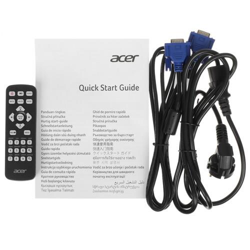 Интегрированный динамик мощностью 3 Вт воспроизводит чистый звук. Проектор Acer X1226AH выполнен в пластиковом корпусе черного цвета с кнопками и световыми индикаторами. Для удобного управления на расстоянии в комплекте поставляется пульт ДУ.