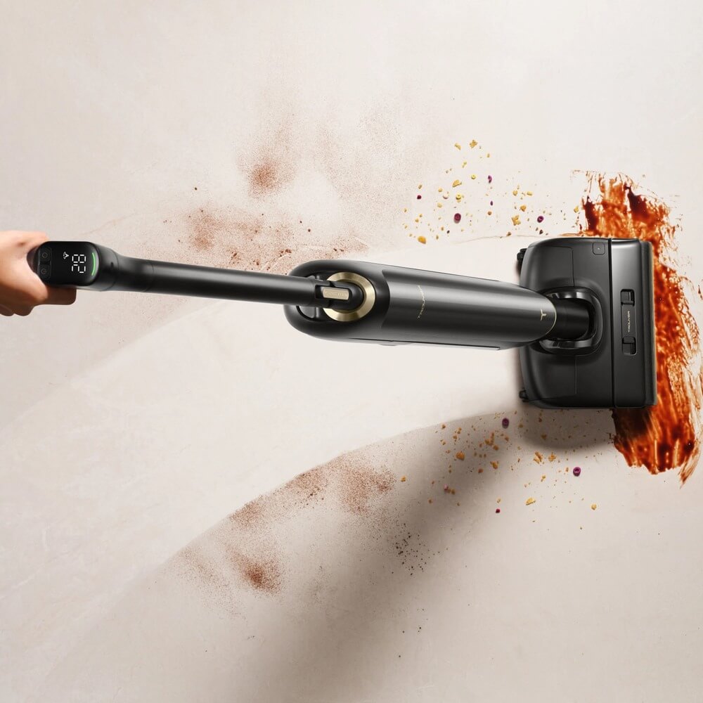 высокоскоростной двигатель с частотой вращения 104000 об/мин, автоматическая самоочистка (промывка щётки при температуре 90 °C, сушка валика при температуре 90 °C), технология Lie-Flat Raech (складная труба всасывания с наклоном на 180°), вращение на 90°, технология защиты от запутывания волос Tangle-Free, индикация концентрации пыли и процесса сушки валика