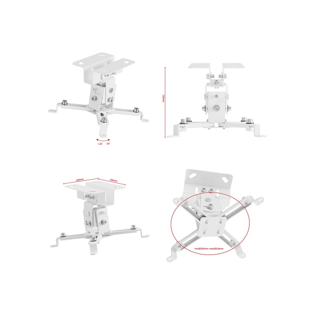 Потолочный кронштейн для проектора UNITEKI PM2202W обеспечит надежную фиксацию практически любого современного мультимедийного проектора на потолке вашего офиса, дома или другого помещения. Крепкий, прочный, при этом элегантный кронштейн PM2202W белого цвета станет прекрасным дополнением светлого интерьера. Кронштейн поставляется в оригинальной упаковке, с подробной инструкцией и широким набором креплений для потолочной инсталляции.