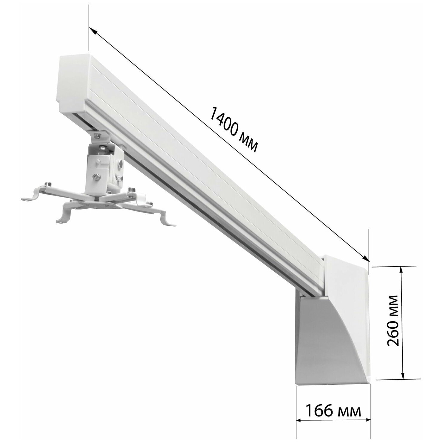 Универсальное настенное крепление Wize WTH для короткофокусных проекторов. Выдерживает нагрузку до 20 кг. Проектор может размещаться на любом расстоянии от стены в пределах длины штанги - максимальное расстояние 140 см.