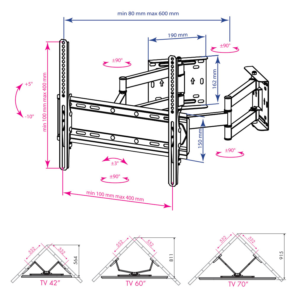 Диагональ ТВ: 32-70 дюйм