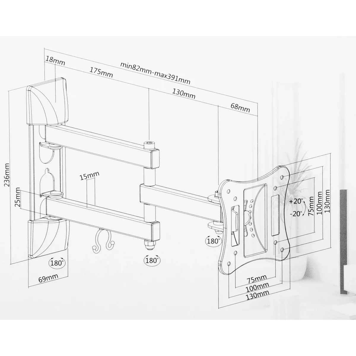 Подходит для телевизоров c диагональю