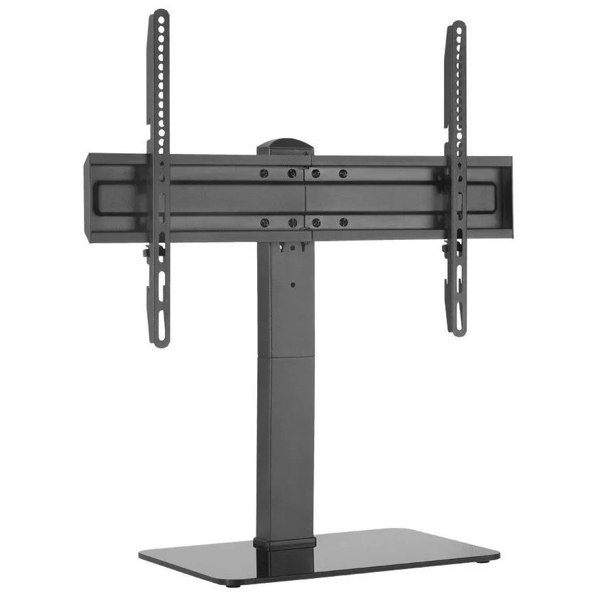 Эта подставка имеет максимальную нагрузку до 40 кг и регулируемую высоту. Она выполнена из металла и стекла и имеет стильный дизайн, который подойдет к любому интерьеру.