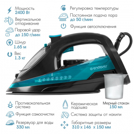 Утюг Endever Delta-227 черный/лазурно-синий