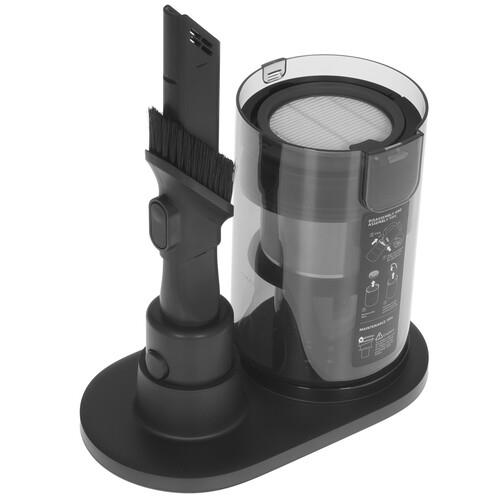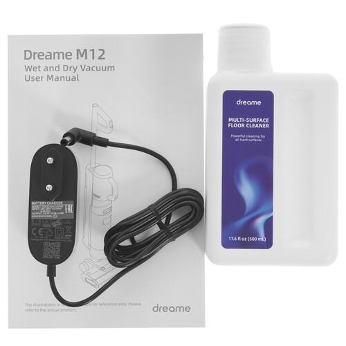 Пылесос Dreame M12 представлен в черном корпусе и работает от встроенного аккумулятора. Его полного заряда хватает на уборку поверхностей в течение 35 минут. Особенность модели в поддержке влажной и сухой уборки, что делает пылесос универсальным. Он собирает жидкости, используя для сбора контейнер объемом 0.9 л. Для сбора сухого мусора применяется контейнер емкостью 0.35 л. Отсоединив часть корпуса с ручкой, вы получаете ручной пылесос. С его помощью можно убирать поверхности в салоне авто, а также очищать поверхности кресел и диванов.
