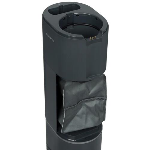 Пылесос вертикальный Polaris PVCSDC 2002 с док-станцией избавляет от необходимости очистки контейнера вручную. Мусор скапливается в специальном накопителе в мешок вместимостью 3 л. Благодаря УФ-лампе содержимое обеззараживается.