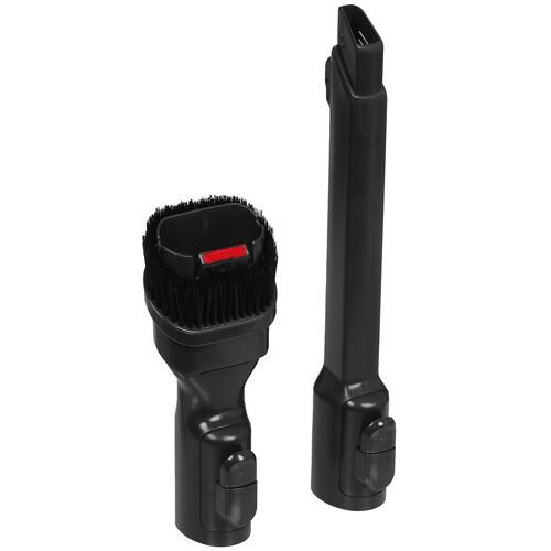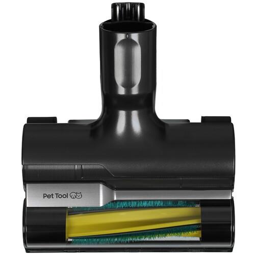 Эффективность уборки повышается благодаря турбощетке. Это насадка с жесткими щетинками и вращающимся валом. Она собирает крупный и тяжелый мусор, хорошо очищает от шерсти и волос ковровые покрытия.