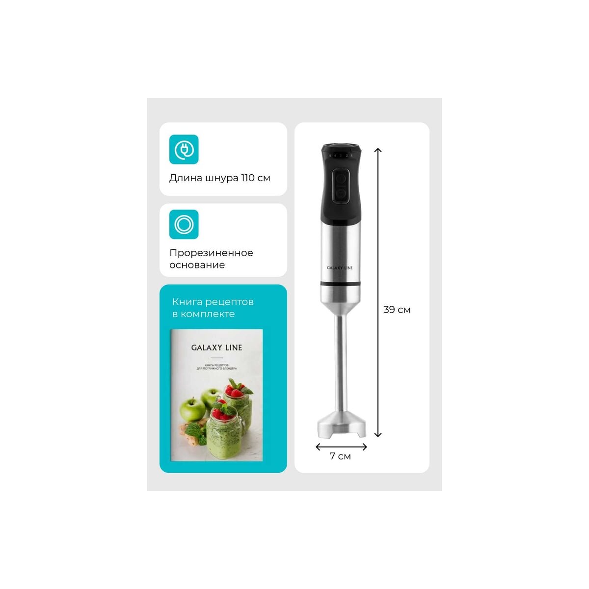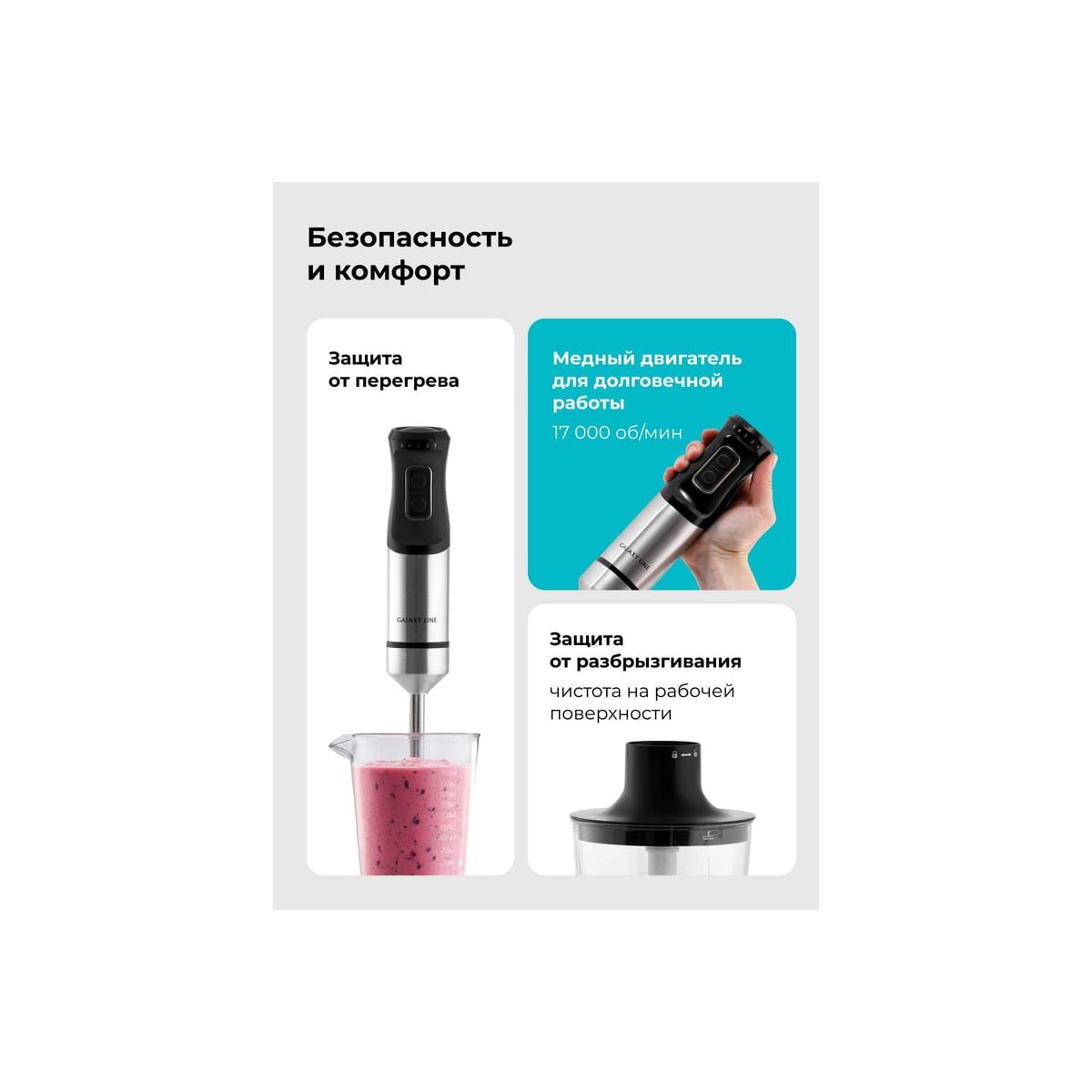 Многофункциональность: блендер GALAXY LINE GL 2141 подходит для приготовления супов-пюре, соусов, коктейлей, детского питания и многого другого