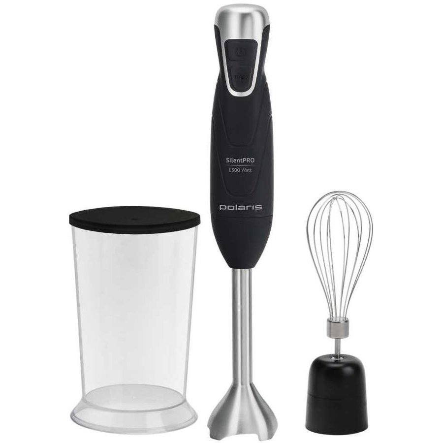 тип: погружной, мощность: 1300Вт, скоростей/режимов — 2, турборежим, рабочая поверхность — нержавеющая сталь, венчик для взбивания, защита от перегрузки, цвет: черный