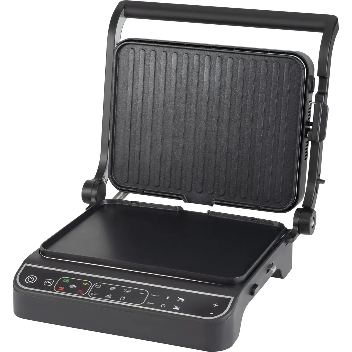 Основные характеристикиБрендHYUNDAIМодельHYG-7001Мощность2000 ВтТемпература80 - 230°СШирина рабочей поверхности30 смДлина рабочей поверхности23 смТип нагревательного элементаТЭНТип управленияэлектронноеАнтипригарное покрытие нагревательных частейестьСъемные формыестьКоличество программ/режимов11Список режимов/программ приготовленияСтейк(med/med rare/med well/well done), курица, вафли, сосиски, рыба, бекон , овощи, ручной режимОсобенностиУстановка времени приготовленияестьРегулировка времени приготовленияот 1 до 60 минУстановка температуры приготовленияестьРегулировка температуры приготовленияот 80 до 230 СРаздельное включение нагревательных элементовестьРаздельная регулировка температуры для пластинестьИнформационный дисплейестьЛоток для сбора жираестьИндикатор включенияестьИндикатор нагреваестьЗвуковой сигналестьФиксация в закрытом состоянииестьНенагревающаяся ручкаестьРаскрытие на 180 градусовестьОсобенностиТермощуп обеспечивает автоматический контроль температуры внутри стейка, тем самым контролирует степень прожарки. Панели для приготовления вафель в комплекте. 10 автоматических программ для приготовления, а так же ручной режим, для оптимальных настроек для каждого типа продуктов. Открытие на 180°, плоская панель и раздельная регулировка температуры панелей, позволяет использовать гриль как плиту.КомплектацияПринадлежности в комплектелоток для жира, термощуп, панели для вафельКорпусДлина электрокабеля1 мЦветчерный и черныйРазмеры (ШхВхГ)37 х 16.5 х 33.5смУпаковкаГабариты упаковки (ед) ДхШхВ0.441x0.4x0.25 мВес упаковки (ед)8.8 кг