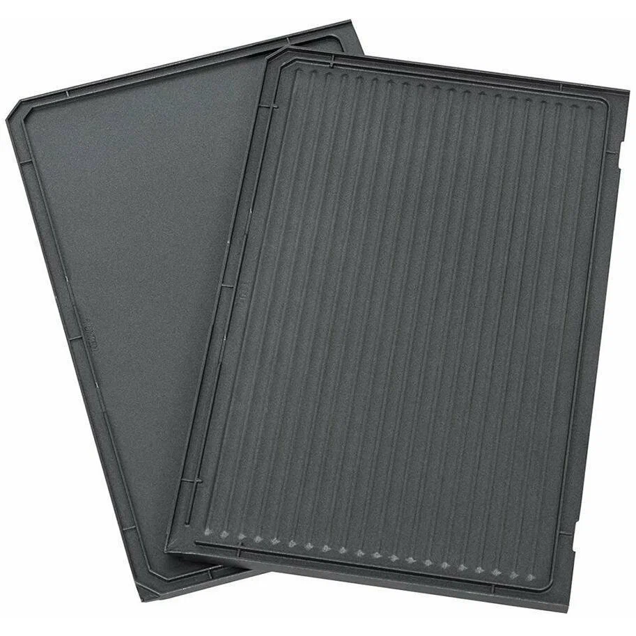 съемные панели; замок на ручке гриля; рабочая поверхность 37х23 см; в комплекте 2 пластины рифлёная/гладкая