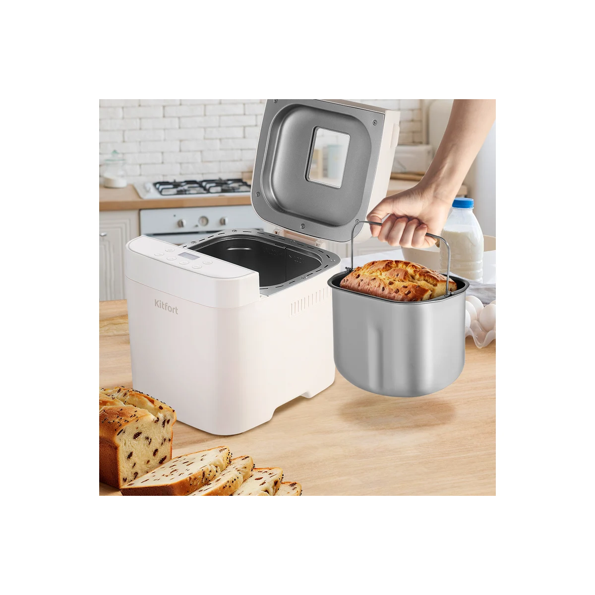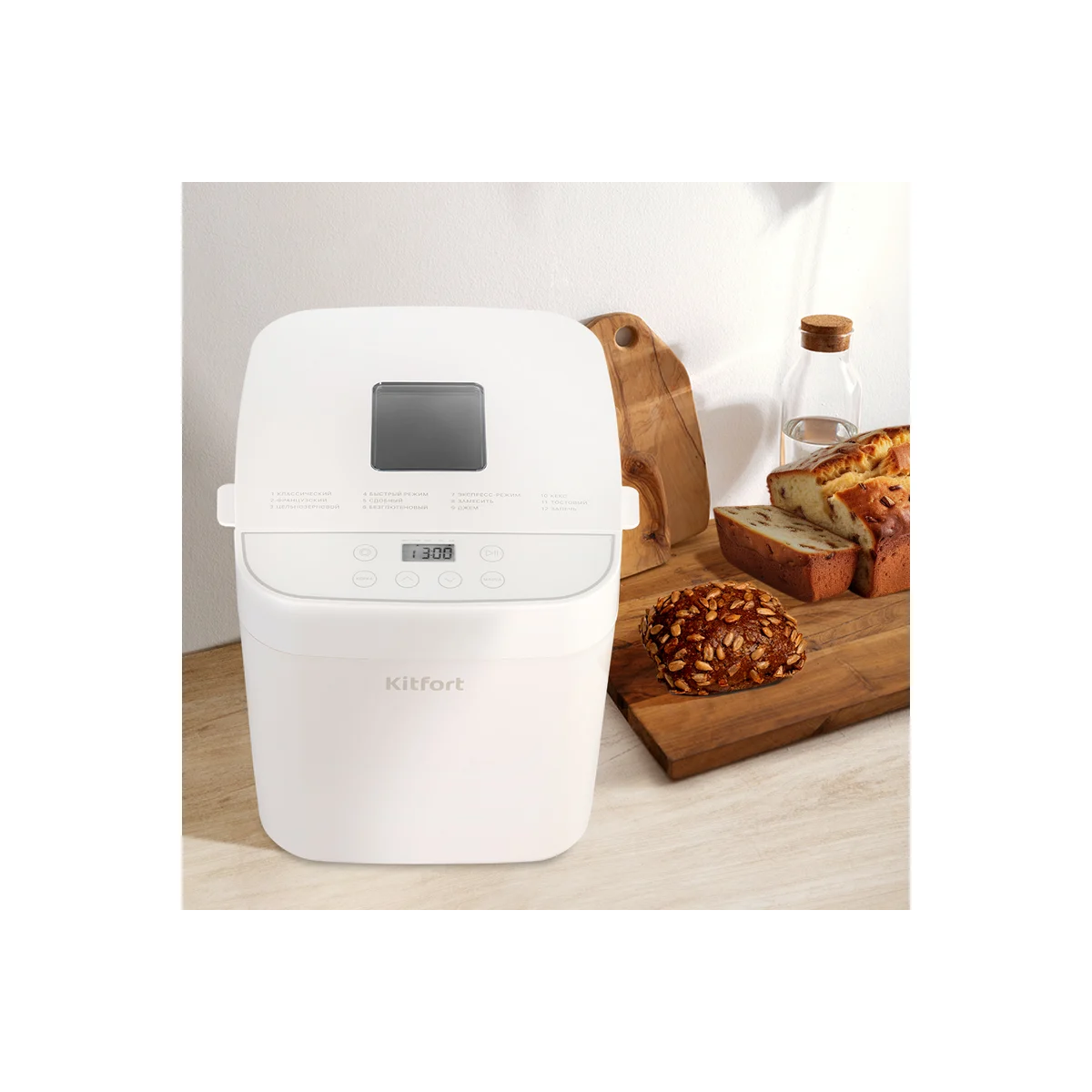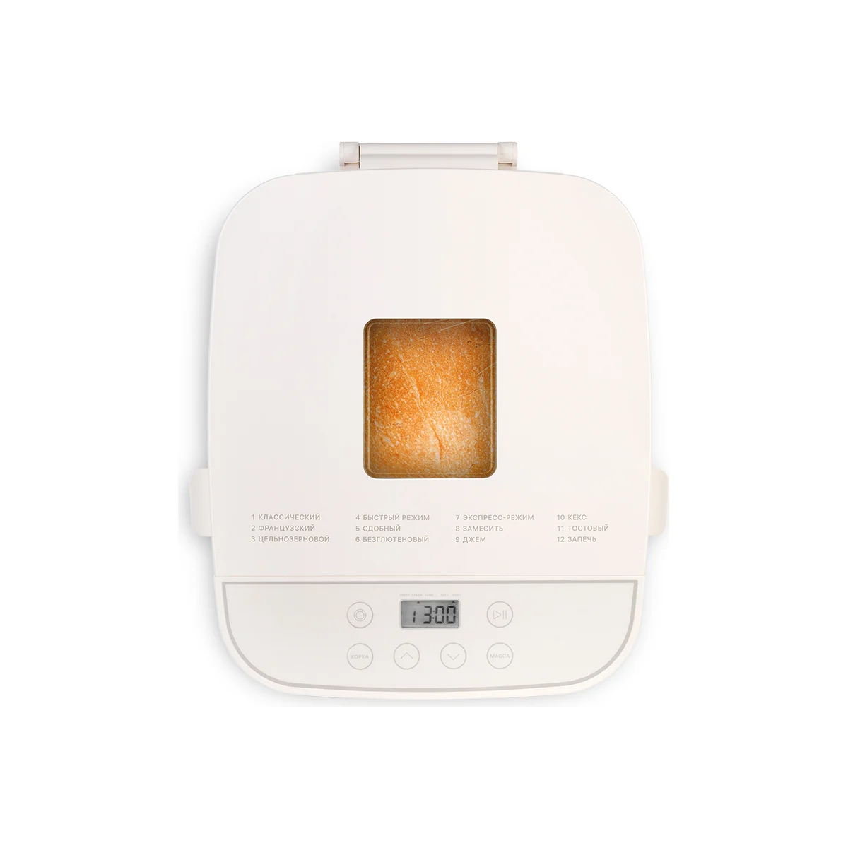 Технические характеристикиСпособ установкинастольныйНапряжение220 ВПотребляемая мощность0.55 кВтПанель управлениямеханическаяМатериал корпусапластикШирина328 ммВысота227 ммДлина282 ммЦветбелыйКоличество программ12Выбор размера выпечкидаВозможность выбора цвета корочкиестьДисплейдаАвтозапускнетФункция «паузы»даТаймердаСигнал по окончании работыдаАнтипригарное покрытиедаЗащита от перегреванетГабариты без упаковки328 х 282 х 227 ммВес нетто4 кг
