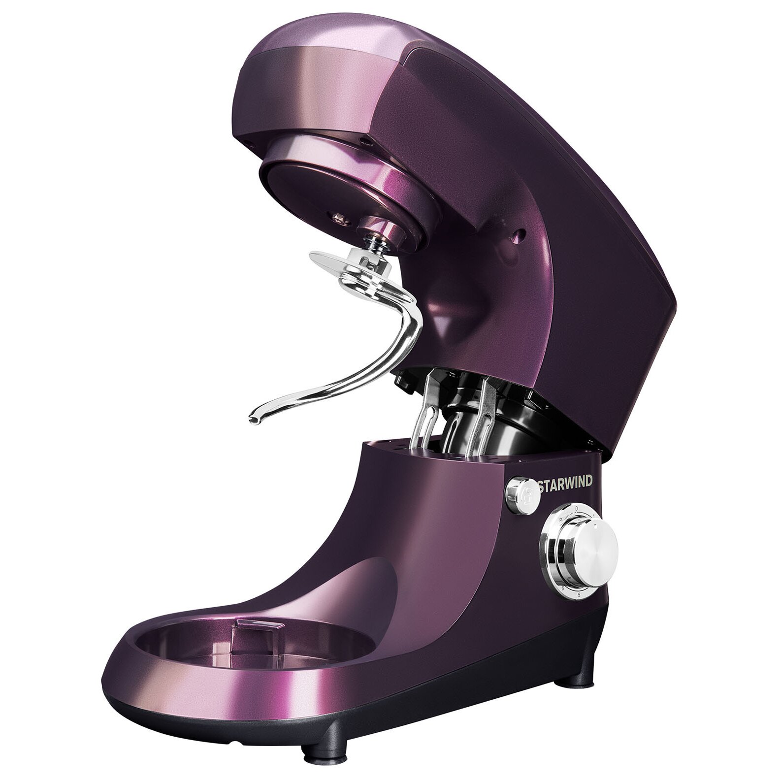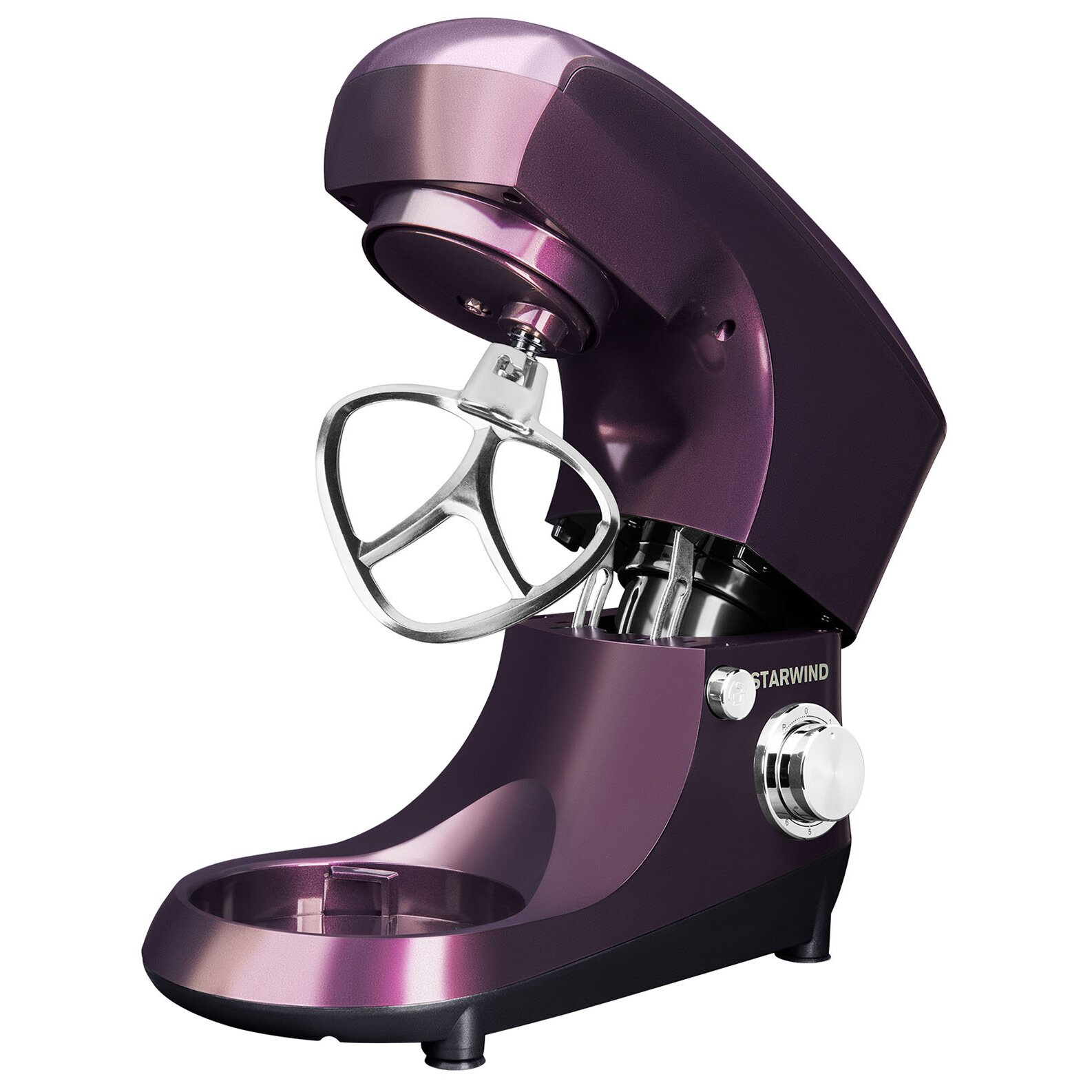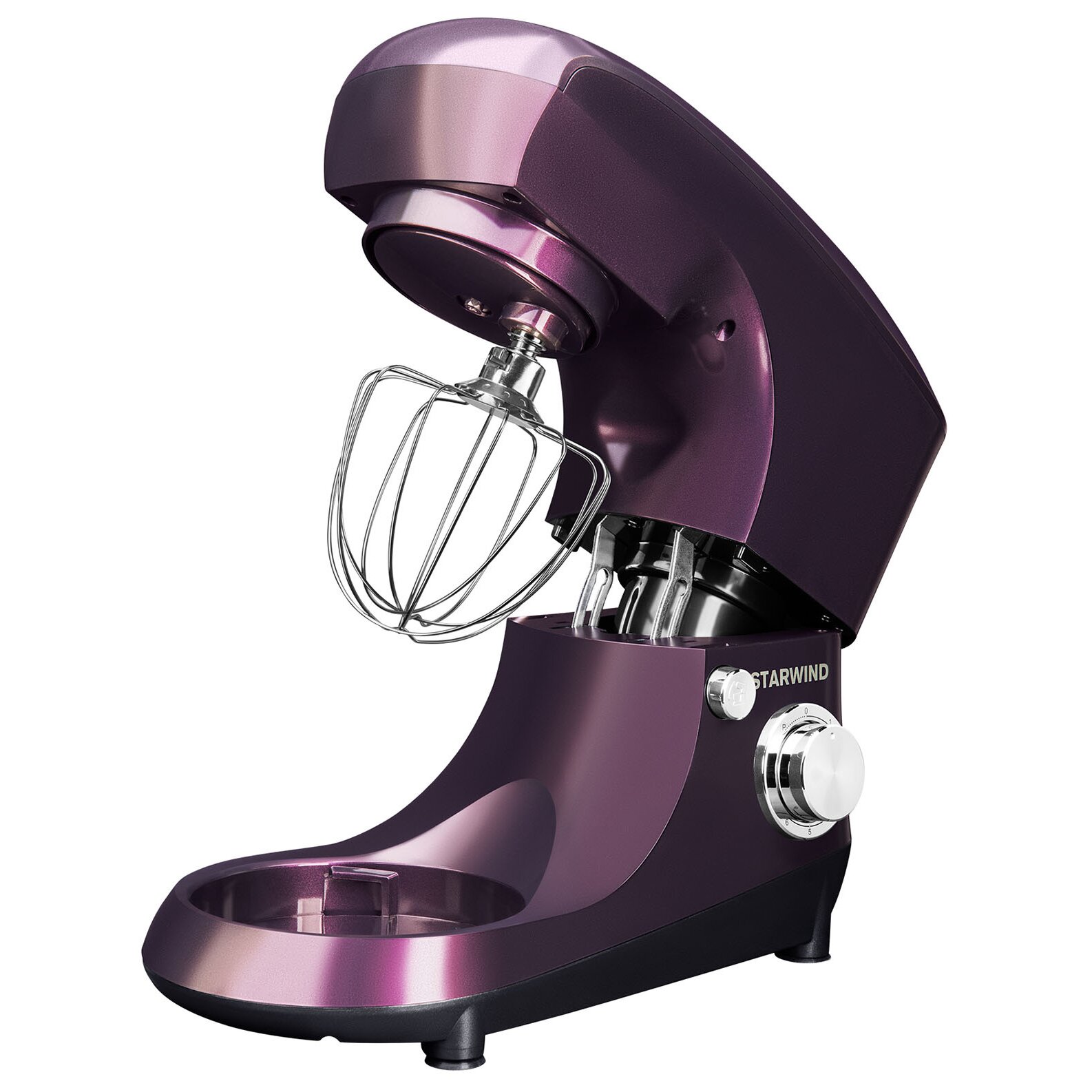 Планетарный миксер Starwind SPM5180 – функциональная модель, которая гарантирует быстрое смешивание ингредиентов и устранение комочков в креме, муссе и соусе. Станет помощником каждой хозяйке, которая оценит его по достоинству. Мощность современного планетарного миксера составляет порядка 1000 Ватт, а объем предусмотренной в конструкции чаши равен 5,5 литра. Имеется шесть скоростных режимов, а принцип действия основан на планетарном вращении. Корпус изготовлен из прочного пластика, выполнен в ежевичном цвете. В комплекте есть три насадки, ножки прорезиненные.