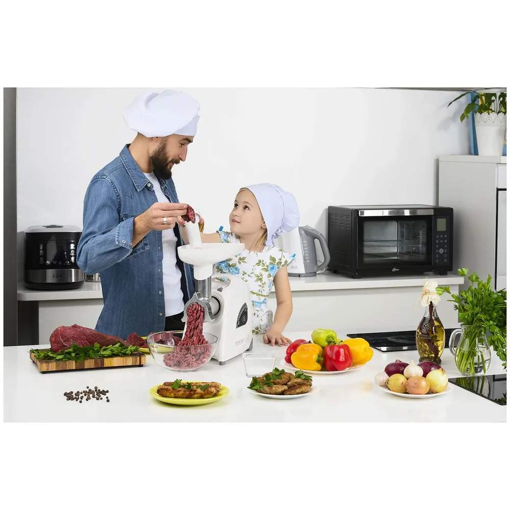 ОсобенностиРеверсДаВид насадкиДля фарша, Соковыжималка, Насадка-овощерезкаСистемы защитыЗащита от перегрузки (автоматический предохранитель)Конструктивные особенностиОтсек для шнура, Отсек для насадок, Прорезиненные ножкиОбщиеТипМясорубкаПартномер316146Страна-изготовительРоссияТехнические характеристикиПроизводительность, кг/мин3Мощность, Вт2000Количество скоростей1Длина шнура, м1.5МатериалМатериал корпусаПластикМатериал лоткаПластикДополнительныеЦветБелый
