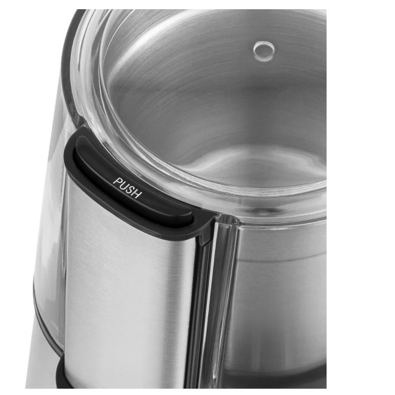 Кофемолка электрическая MAUNFELD MF-521S позволит вам легко и качественно измельчать кофейные зерна, орехи, специи и прочие продукты. Измельчение осуществляется на основе ротационного ножа. Металлическая емкость вмещает до 60 г кофейных зерен. Расположенные на основании корпуса нескользящие ножки гарантируют устойчивое размещение кофемолки MAUNFELD MF-521S на столешнице. Управление выполняется одним нажатием кнопки. Для повышения безопасности в эксплуатации реализована функция защитной блокировки при снятой крышке.