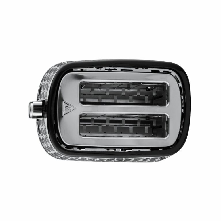 На корпусе тостера есть рычаг с плавным ходом, позволяющий загрузить сразу два куска хлеба в прибор. Регулировка степени обжаривания осуществляется с помощью механического поворотного переключателя.