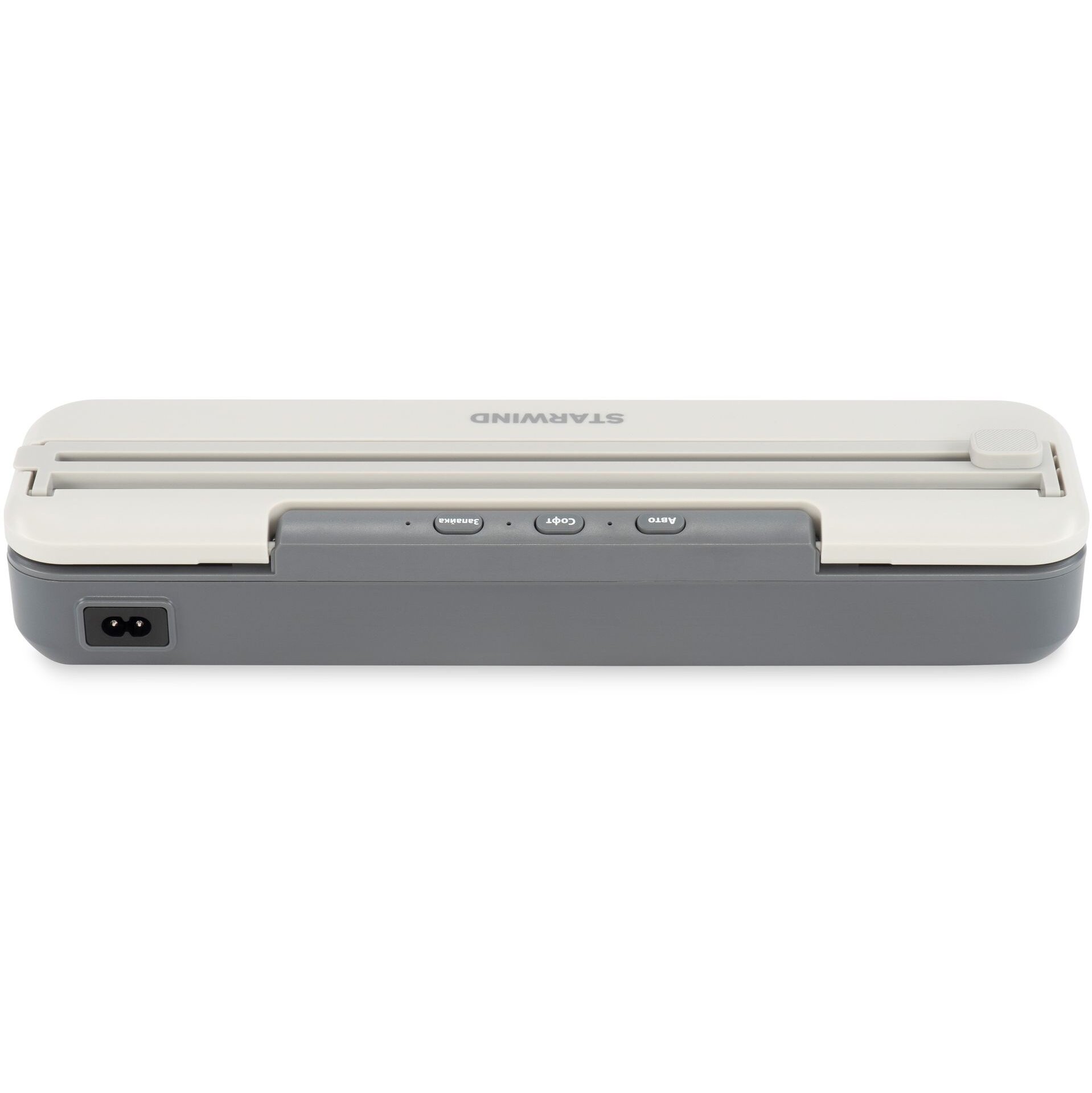 4 программы, откачака 4,5л/минуту, макс. давление -65Kpa, шум 70dB, встроенный нож, насадка для вакуумации контейнеров, 10 пакетов 20*30см в комплекте.